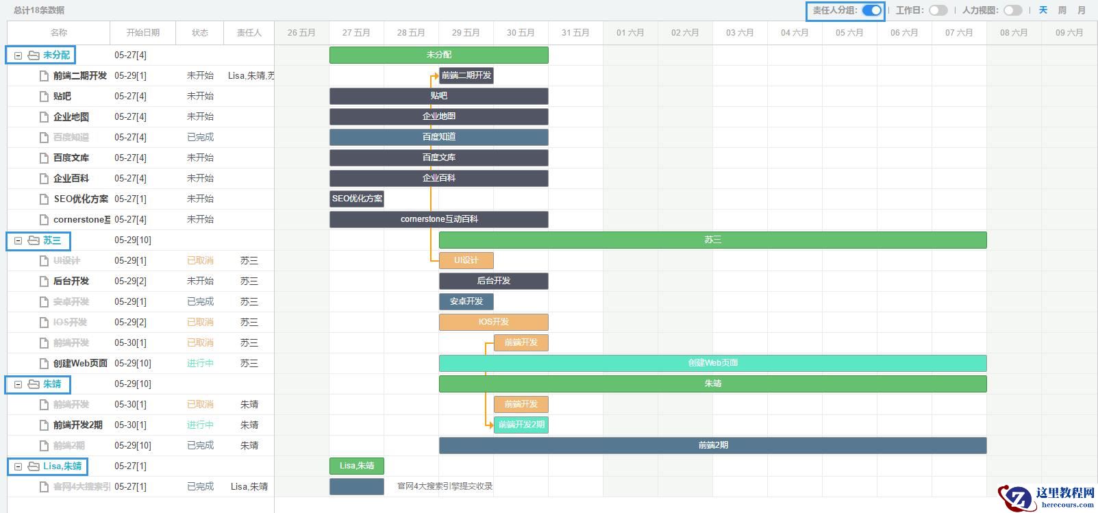 接下来,把项目的任务指派给团队成员,你可以针对某个任务填入所指派的责任人,也可以根据角色进行批量的任务指派。
