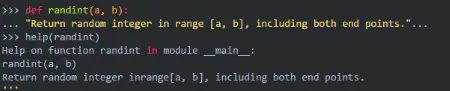 Python的函数支持递归、默认参数值、可变参数,但不支持函数重载。为了增强代码的可读性,可以在函数后书写“文档字符串”(Documentation Strings,或者简称docstrings),用于解释函数的作用、参数的类型与意义、返回值类型与取值范围等。可以使用内置函数help()打印出函数的使用帮助。比如: