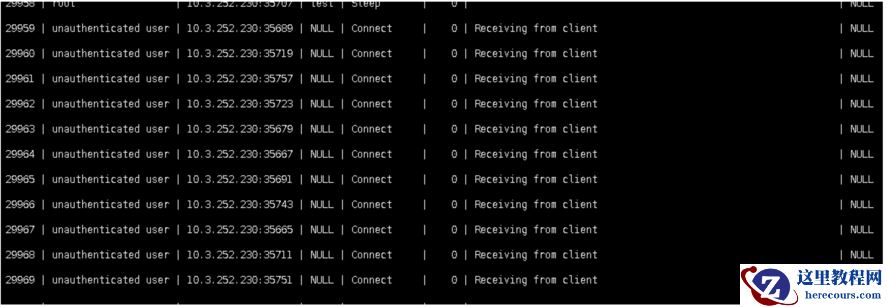 5.登上数据库时有发现大量会话是unauthenticated user状态