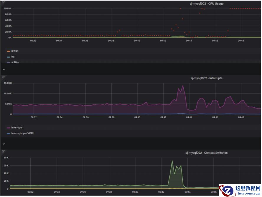 2.CPU 系统中断和上下文切换指标同时突然上涨。