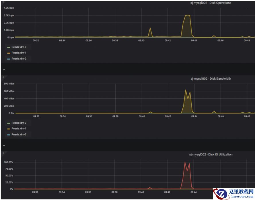 3.数据库所在磁盘IO几乎打满。