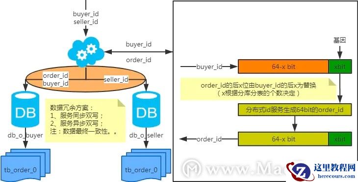注:按照order_id或buyer_id查询时路由到db_o_buyer库中,按照seller_id查询时路由到db_o_seller库中。感觉有点本末倒置!有其他好的办法吗?改变技术栈呢?