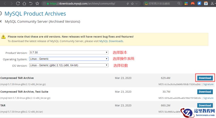 https://cdn.mysql.com/archives/mysql-5.7/mysql-5.7.30-linux-glibc2.12-x86_64.tar.gz可以使用 wget 命令直接下载到服务器上,当然,我是用迅雷下载到本地后上传到 linux 服务器中的
