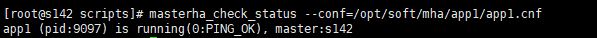 masterha_check_status --conf=/opt/soft/mha/app1/app1.cnf