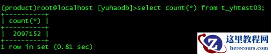 测试字段info上有二级索引(且非前缀索引)的字段扩容操作并插入数据达到一定量使变更操作耗时较为明显use yuhaodbcreate table t_yhtest02(id int primary key auto_increment,info varchar(1) not null default '' comment '字符串测试字段,宽度1字符',key idx_info(info))engine=innodb charset=utf8mb4 comment='测试表2';insert into t_yhtest02 (info) values ('1');insert into t_yhtest02 (info) select info from t_yhtest02;……重复以上插入操作插入数据200W左右