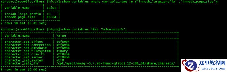 环境参数确认show variables where variable_name in ('innodb_large_prefix' ,'innodb_page_size');show variables like '%character%';
