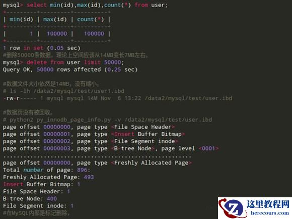 MySQL内部不会真正删除空间,而且做标记删除,即将delflag:N修改为delflag:Y,commit之后会会被purge进入删除链表,如果下一次insert更大的记录,delete之后的空间不会被重用,如果插入的记录小于等于delete的记录空会被重用,这块内容能够最终靠知数堂的innblock工具做多元化的分析。