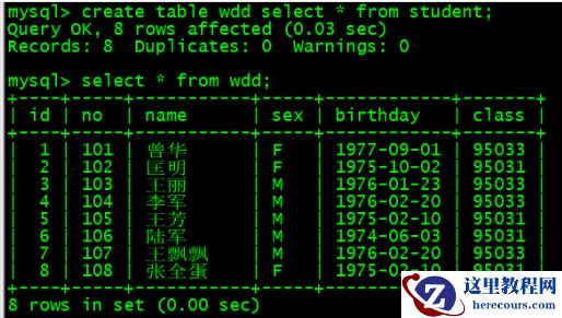 需要注意:通过以上方法创建表,约束(包括主键、外键等)、索引、auto_increment 等属性并不会进行复制的