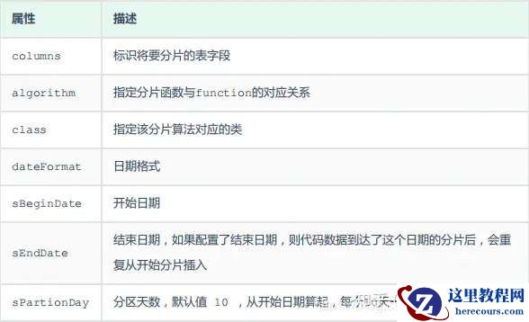 <tableRule name="range-date-hash"> <rule> <columns>create_time</columns> <algorithm>range-date-hash</algorithm> </rule> </tableRule> <function name="range-date-hash" class="io.mycat.route.function.PartitionByRangeDateHash"> <property name="dateFormat">yyyy-MM-dd HH:mm:ss</property> <property name="sBeginDate">2020-01-01 00:00:00</property> <property name="groupPartionSize">6</property> <property name="sPartionDay">10</property> </function>