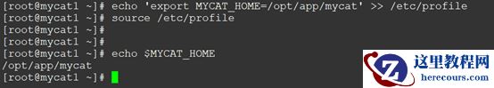 echo 'export MYCAT_HOME=/opt/app/mycat' >> /etc/profile