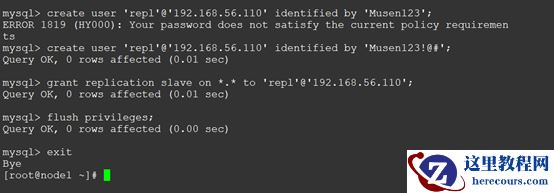 create user 'repl'@'192.168.56.110' identified by 'Musen123!@#';