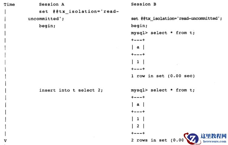 以上例子,我们的隔离级别设置为READ UNCOMMITTED,因此在会话A中事务没有提交的前提下,会话B中两次select操作取到了不同的结果,并且这来给你个记录是在会话A中未提交,即产生了脏读,违反了事务的隔离性。脏读现象在生产环境中不常发生,而且脏读的条件是隔离界别设置未READUNCOMMITTED,而目前大部分的数据库都至少设置为READ COMMITTED,InnoDB存储引擎默认为READ REPEATABLE,SQL server和Oracle使用的都是READ COMMITTED。