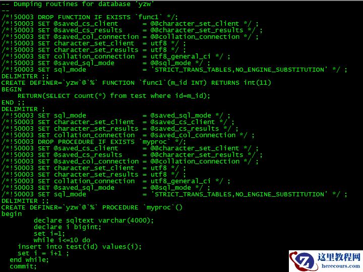 mysqldump -uroot -pmysql --no-data --routines --events --databases test [ceshi]> dump-defs.sql