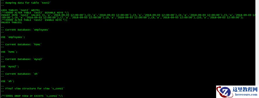 mysqldump -uroot -pmysql --no-create-info --routines --events --databases test [ceshi]> dump-data.sql