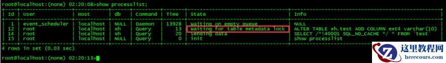 3.进行DDL操作,并堵塞