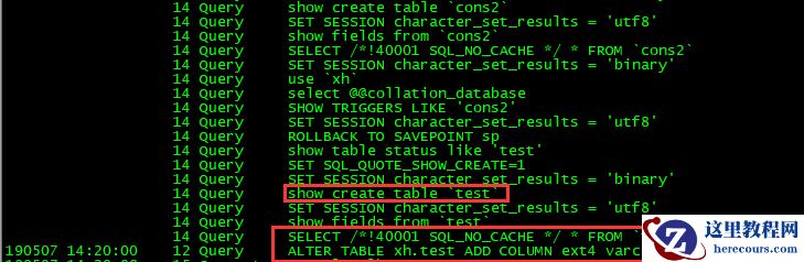 2.观察通用日志,发现正在对xh.test表进行备份