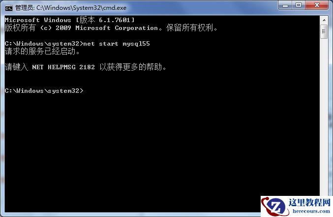 我本地的Mysql服务名称是Mysql55。启动命令为:net start mysql55