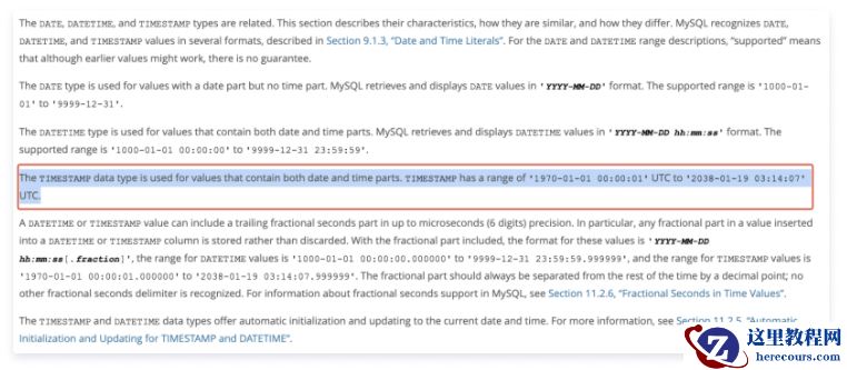 在MySQL中时间字段,timestamp最大值也为2038年,这也是由于timestamp实际存储的是int值,