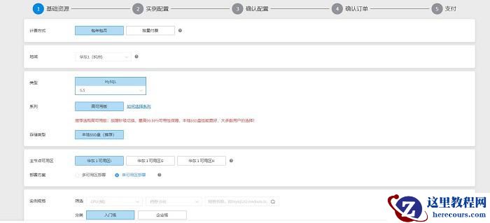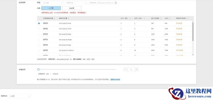 5、根据自身的需求选择CPU、内存、分类、存储空间、时长。