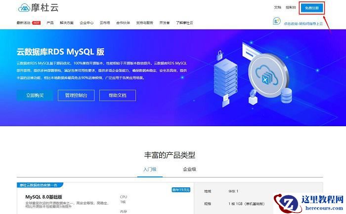 摩杜云数据库RDS MySQL基于源码优化,100%兼容开源版本,性能相较于开源版本数倍提升。云数据库RDS MySQL即开即用,提供多种部署架构,满足各类可用性要求,提供多项企业级能力,确保数据库稳定、安全及高效,提供丰富的运维功能,相比本地数据库最高免去90%运维烦恼,广泛应用于各类应用场景。下面,教大家如何快速使用摩杜云数据库rdsmysql,感兴趣的朋友记得要看完哦~1、打开摩杜云官网,然后找到云数据库rdsmysql产品。