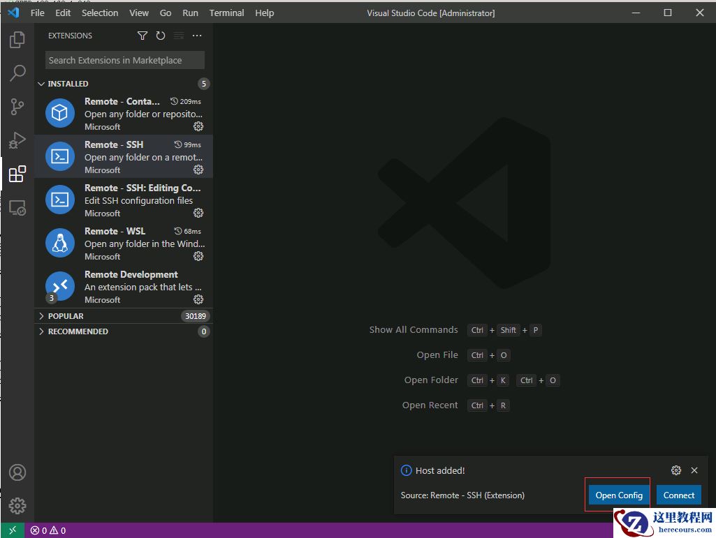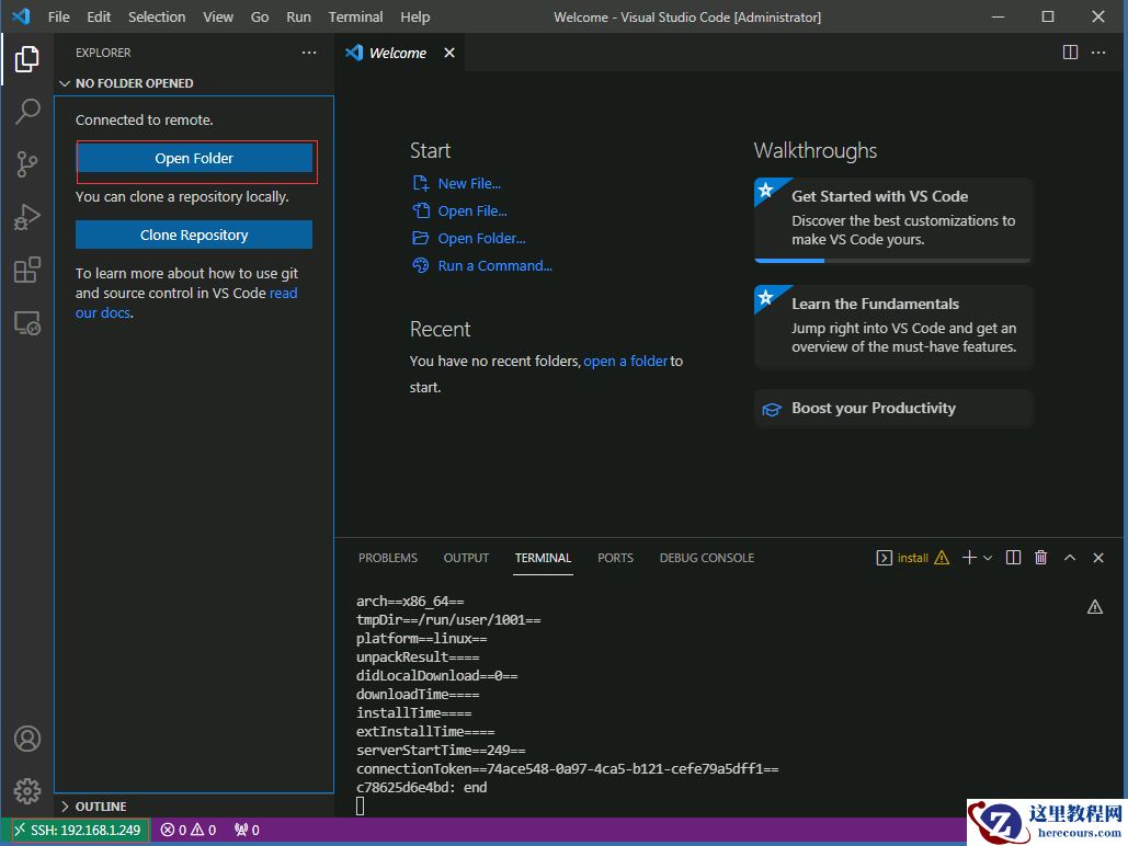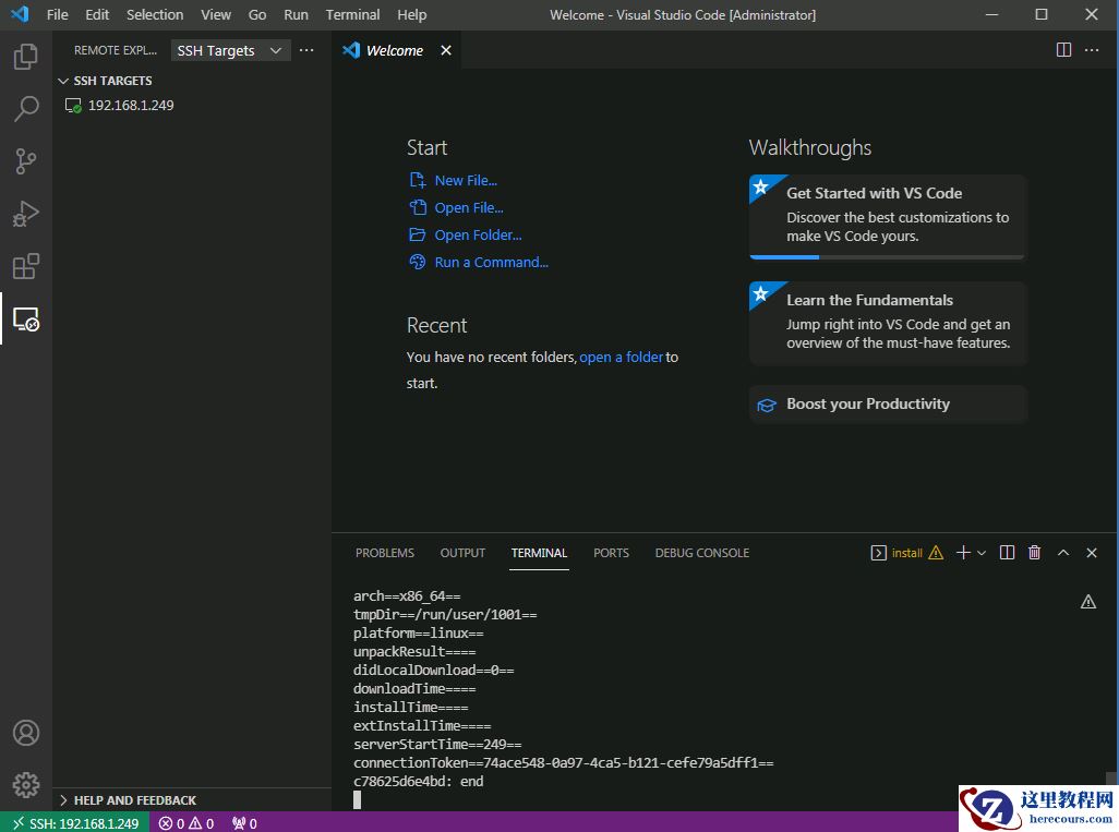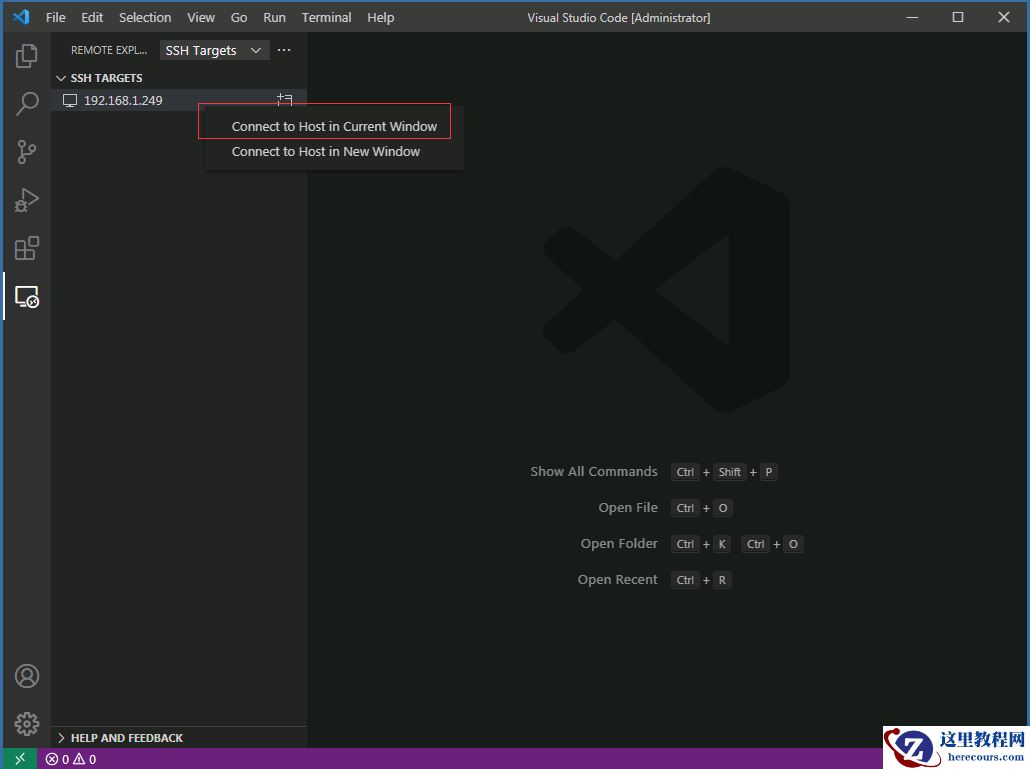 在 VSCode 主界面 ctrl+shift+p 选 Remote.SSH: Connect to host, 输入 root@