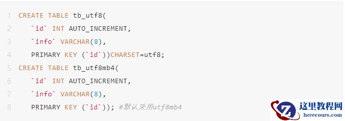 创建两张表,分别为utf8和utf8mb4字符集: