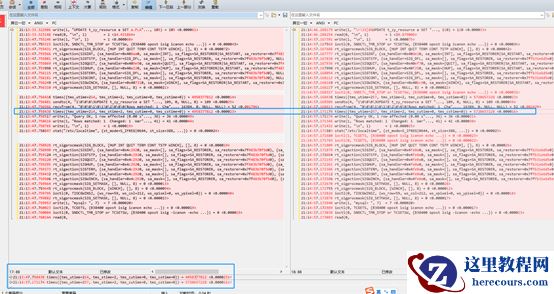 最下面出现的times就是14和23(也就是1.4毫秒和2.3毫秒),左边是5.7,右边是8。我们可以发现最大区别是8里面多了ioctl多了几次。查阅了一下资料,可能关系不大。因为下面这个蓝色显示8还快一点。