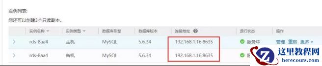 本例中RDS数据库内网IP为192.168.1.16,数据库端口为8635