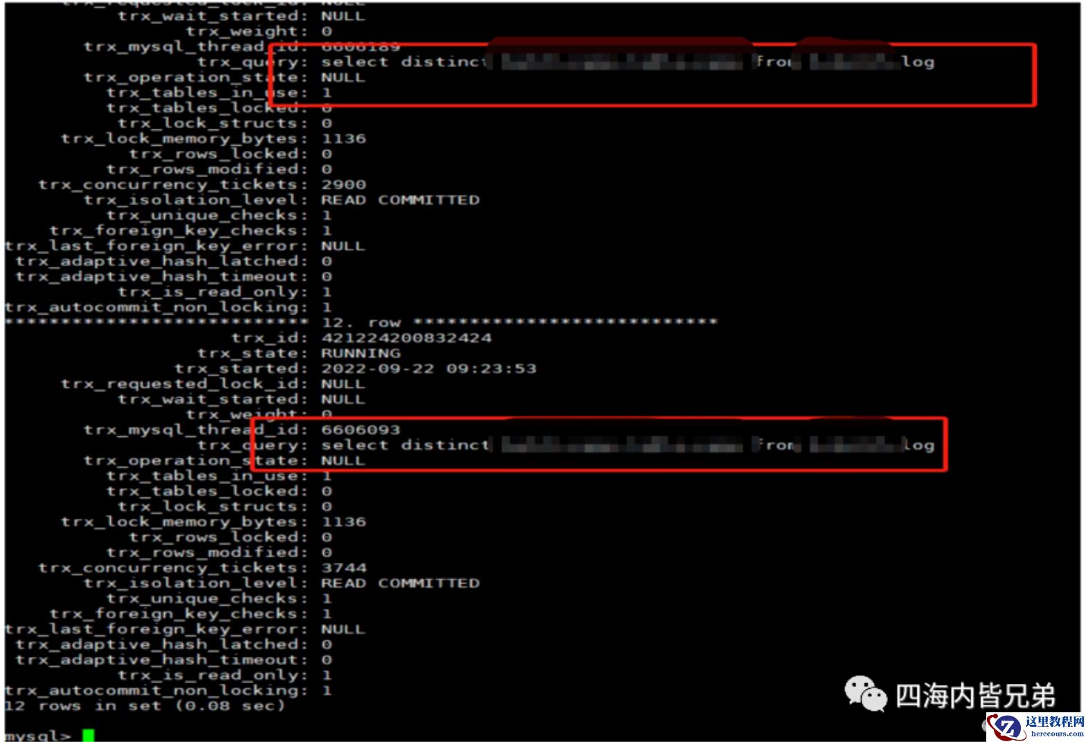 查一下现在事务情况,出乎意料。以上的全表排序都卡主了,那么问题很明显了。