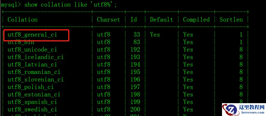 mysql> show global variables like '%server';+----------------------+----------------+| Variable_name | Value |+----------------------+----------------+| character_set_server | gbk || collation_server | gbk_chinese_ci |+----------------------+----------------+2 rows in set (0.00 sec)
