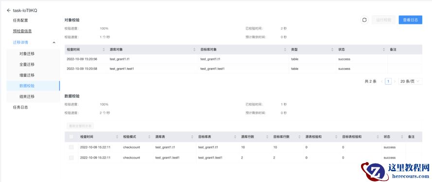 任务展示页面也比较清晰明了,同步了哪些内容,数据是否一致都有比较好的展现。