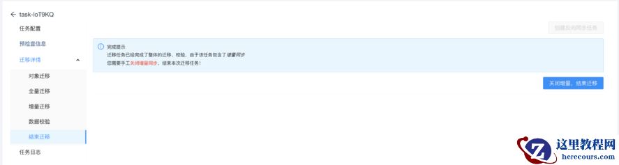 结束迁移是为了关闭增量,保证迁移完成以后,就可以结束迁移了。