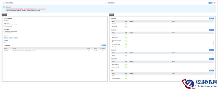 •在任务配置页面,可以看到这次迁移同步任务的源库、目标库和迁移对象信息,之前的预检查信息也可以在这里回顾。