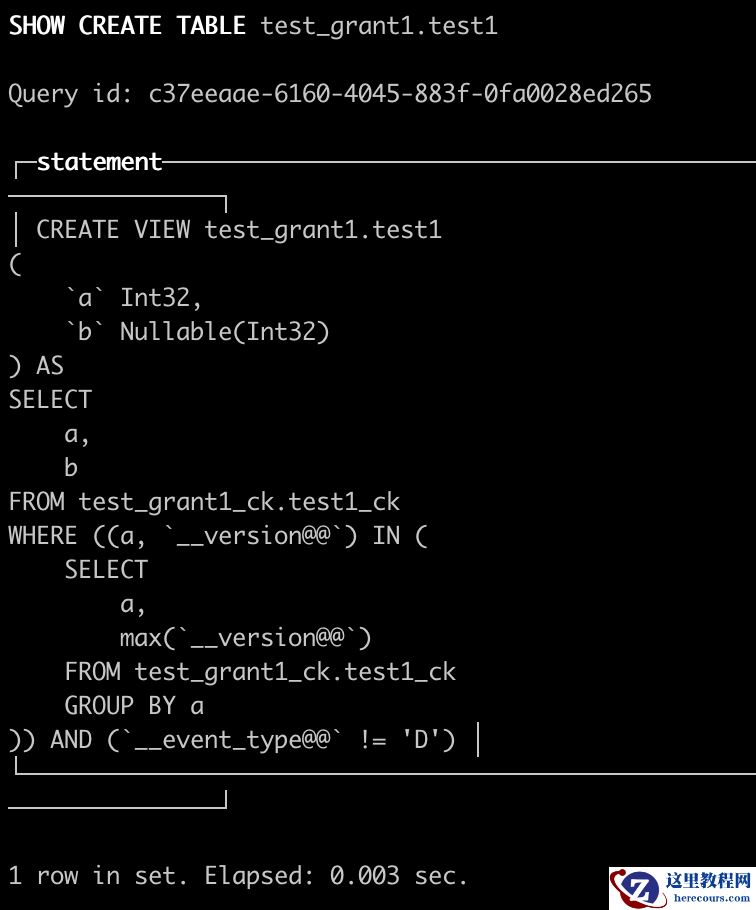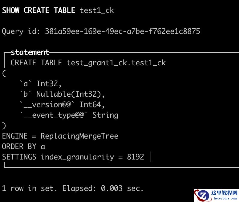 •test_grant1_ck.test1_ck是ReplacingMergeTree的表,除了a,b两列以外,还有__version@@和__event_type@@,