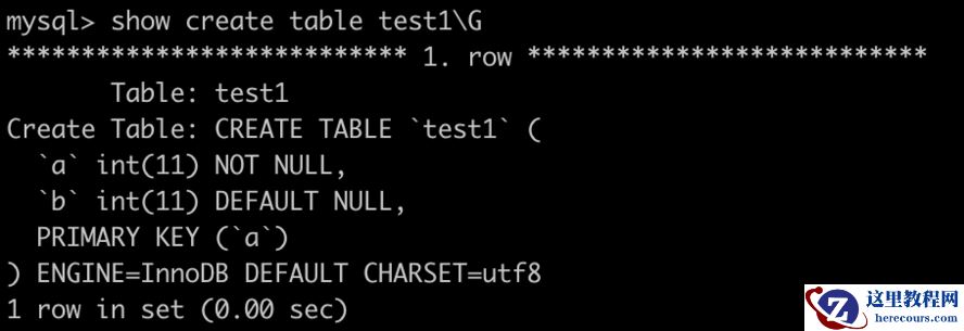 源库上test_grant1.test1表的表结构如下: