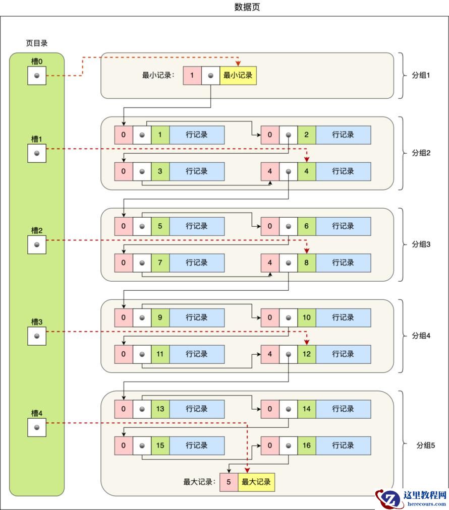 这点不用担心,InnoDB 对每个分组中的记录条数都是有规定的,槽内的记录就只有几条: