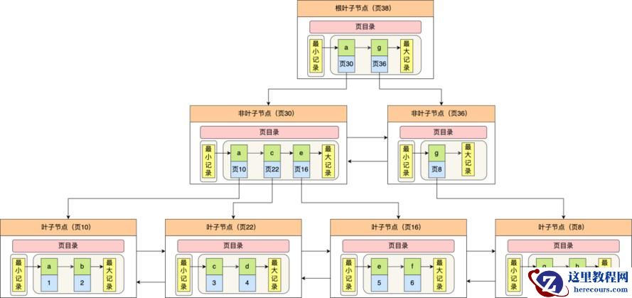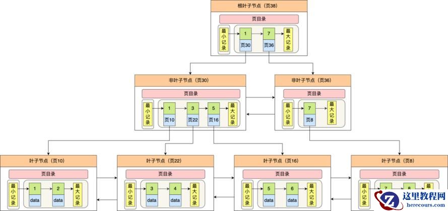 只有叶子节点(最底层的节点)才存放了数据,非叶子节点(其他上层节)仅用来存放目录项作为索引。