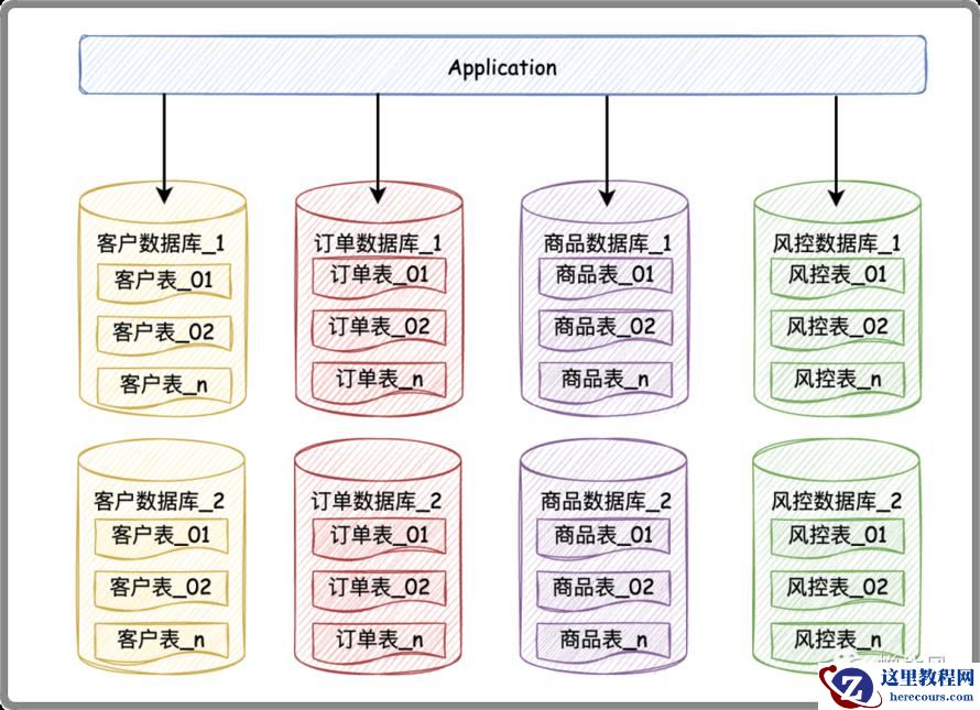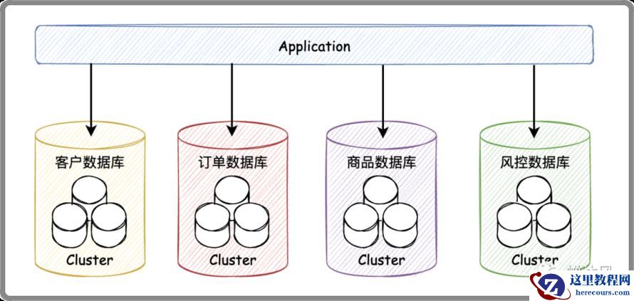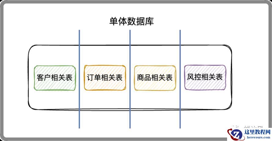 在单体数据库的基础上垂直切几刀,按照业务逻辑拆分成不同的数据库,这就是垂直分库啦。