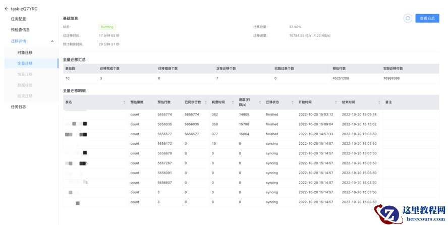 又着重看了下全量迁移的显示