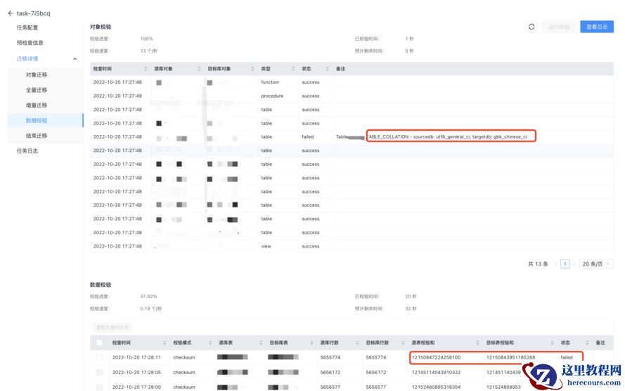 这里模拟下不一致 , 看看能不能校验出来 。 模拟字符集和数据不一致后重新运行校验 , 查看结果 , 都给我校验出来了 , 再次好评 。 数据校验对迁移来说还是很重要的 , 这是一个兜底的功能 , 数据校验不通过我顶多不做业务切换 , 要是数据有问题但是没有校验出来 , 那可就麻烦了 。 经过我大量的不一致模拟 , 发现 DBMotion的校验功能还是非常靠谱的 。 千奇百怪的不一致都能给我校验出来 , 用起来非常踏实 , 不过目前没有重新同步不一致的功能 , 加上这个功能的话就更完美了 。