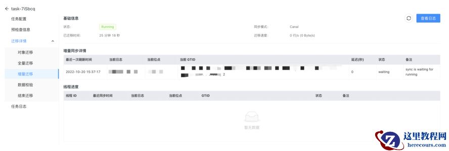 全量完成后 , 增量迁移的详情也可以点进去了 。 主要想关注下增量进度的显示 , 看到有专门的延迟显示 , 还是符合期望值的 。