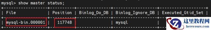 记下这两个信息:File=mysql-bin.00001,Position=117748。(这里也有个坑:先要锁表,再看这两个值,从库开始同步后,再解锁表)。