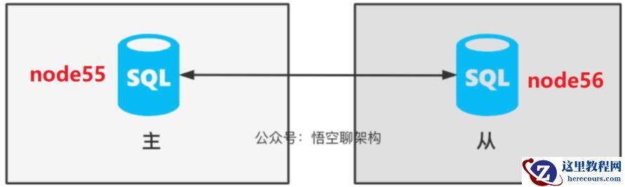两个数据库部署在 node55 和 node56 节点上,他们互为主从关系,所以叫做双主。