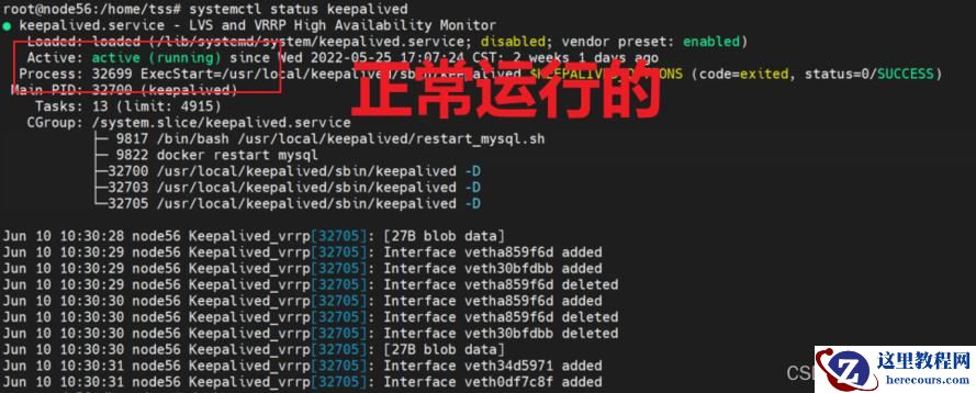 ④ 赶紧检查一波 Keepalived,发现两台 Keepalived 是正常运行的。通过执行命令查看:systemctl status keepalived