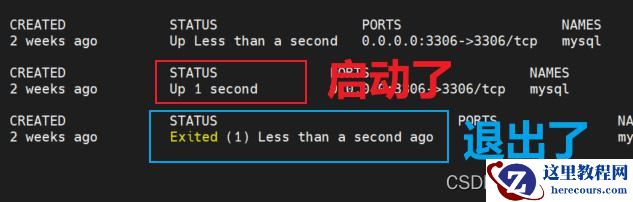 ② 那就到服务器上看下 MySQL 容器的状态吧。到 MySQL 的两台服务器上,先看下 MySQL 容器的状态,docker ps 命令,发现两台 MySQL 容器都不在列表中,这代表容器没正常运行。