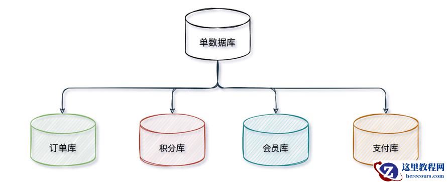 将原本单数据库按不同业务拆分成订单库、物流库、积分库等不仅可以有效分摊数据库读写压力,也提高了系统容错性。