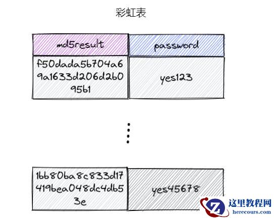 而黑客其实会针对常见的一些密码,生成彩虹表。