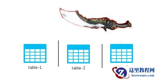 假设我的 DB 中有 table-1、table-2 以及 table-3 三张表,水平切分就是拿着我的绝世好剑,对准黑色的线条,砍一剑或者砍 N 剑!