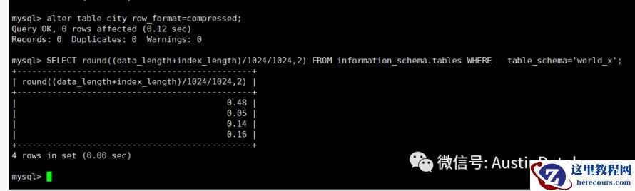 另一种对表得数据压缩的方式也可以将表进行处理,直接将表的数据格式转变为 compressed ,通过这样的方式对于一些 varchar, text blob 等字段类型较多的表进行空间方面的缩减。但 如果表中的字段都是整形或数值型的状态,那么表基本上就不会被压缩。