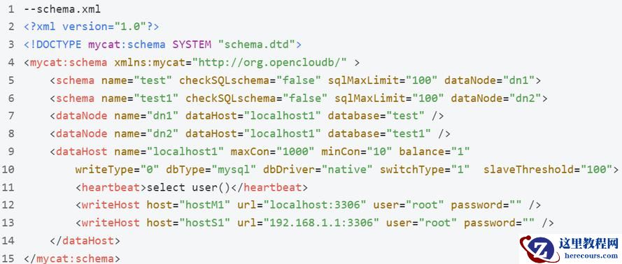 MyCAT 是一款开源的数据库中间件产品。读写分离功能通过配置文件完成,如下